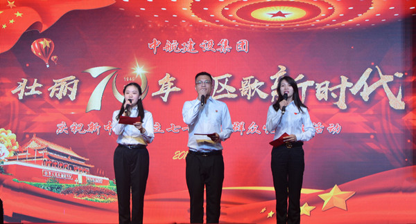 活动以集团公司百名员工共唱《我和我的祖国》快闪视频的播放开场,按“不忘初心担使命”、“勇立潮头搏激流”、“同心逐梦谱新篇”、“砥砺奋进铸辉煌”四个篇章依次展开。一首首满怀深情的赞歌重现伟大祖国浩瀚进程中的历史瞬间、描绘出辽阔土地上的锦绣山河、传递着中航建设人的自豪之情、展示出未来美好的幸福景象。一个个满怀深情的朗诵者相继登场,将中航建设锐意进取,志存高远的精神贯穿始终。演出中,MK体育官方网站的发展成就得以展示,中航建设工作者的人文情怀得到抒发,台下观众沉浸在对中航建设的热爱和为祖国庆生的喜悦之情当中。